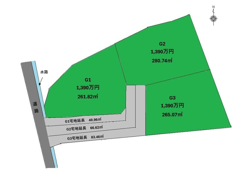 | 設備 | 建築条件なし・セットバック済・プロパンガス・上水道・下水道 |