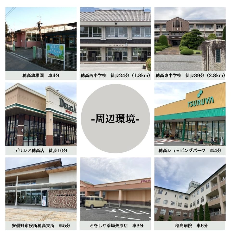 通学区 | 安曇野市立穂高西小学校(1800m) 安曇野市立穂高東中学校(2800m) |