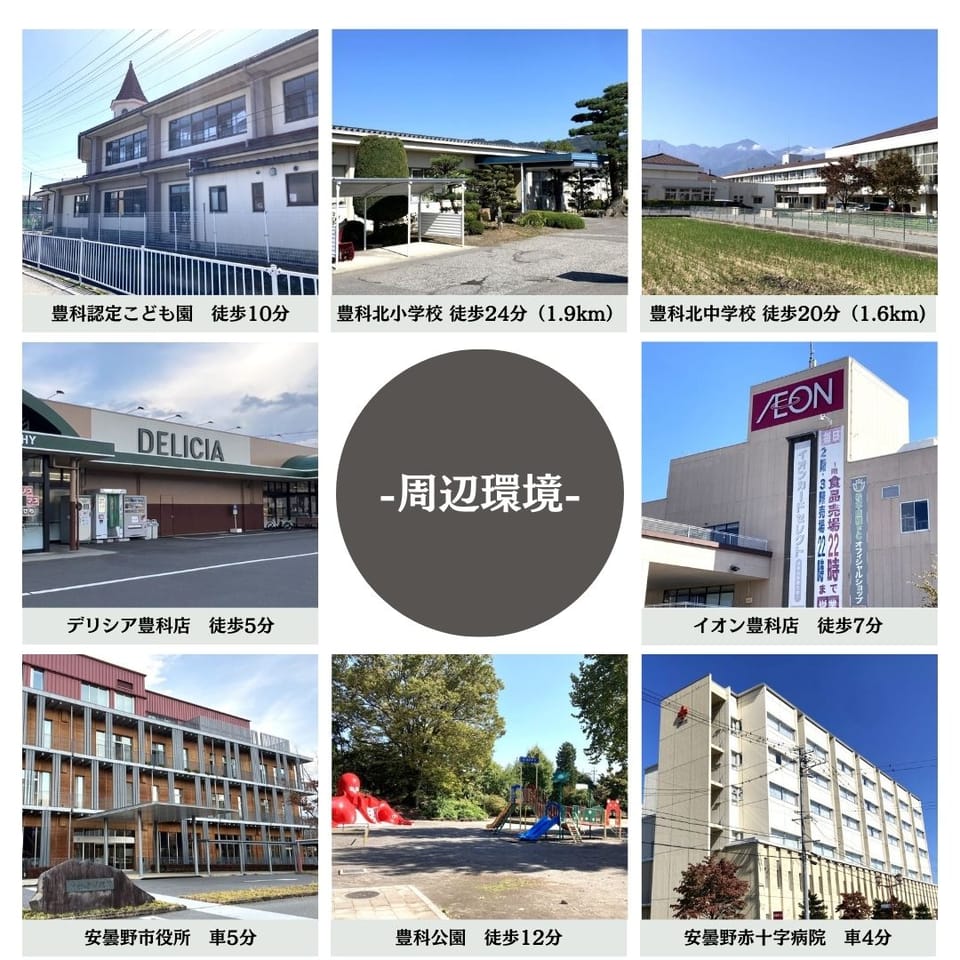 | 通学区 | 安曇野市立豊科北小学校(1900m) 安曇野市立豊科北中学校(1600m) |