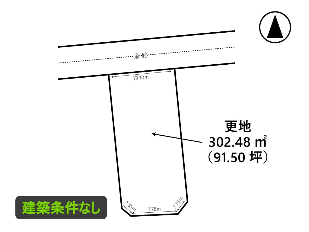 | 接道状況 | 方角:北 道路幅員:5m 公私区分:公道 接面:10m |
