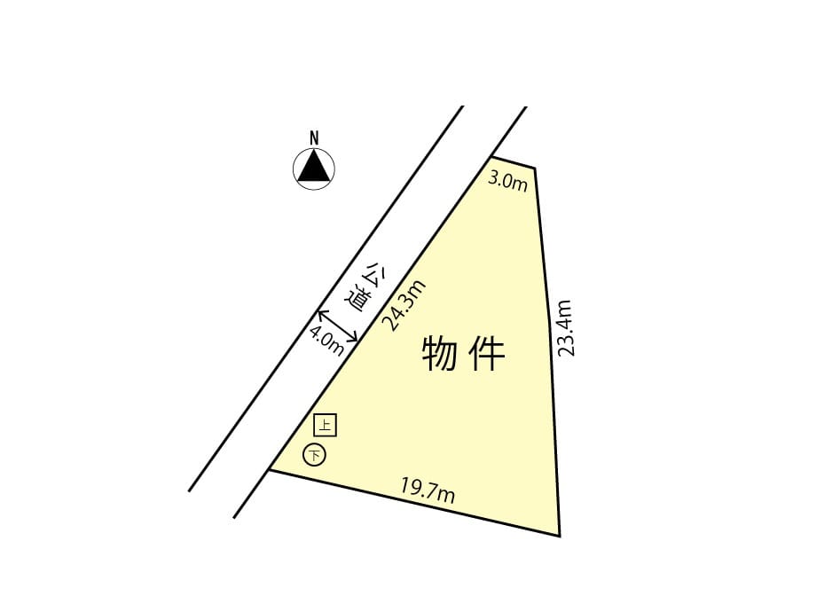 | 接道状況 | 方角:西 道路幅員:4m 公私区分:公道 接面:24.3m |