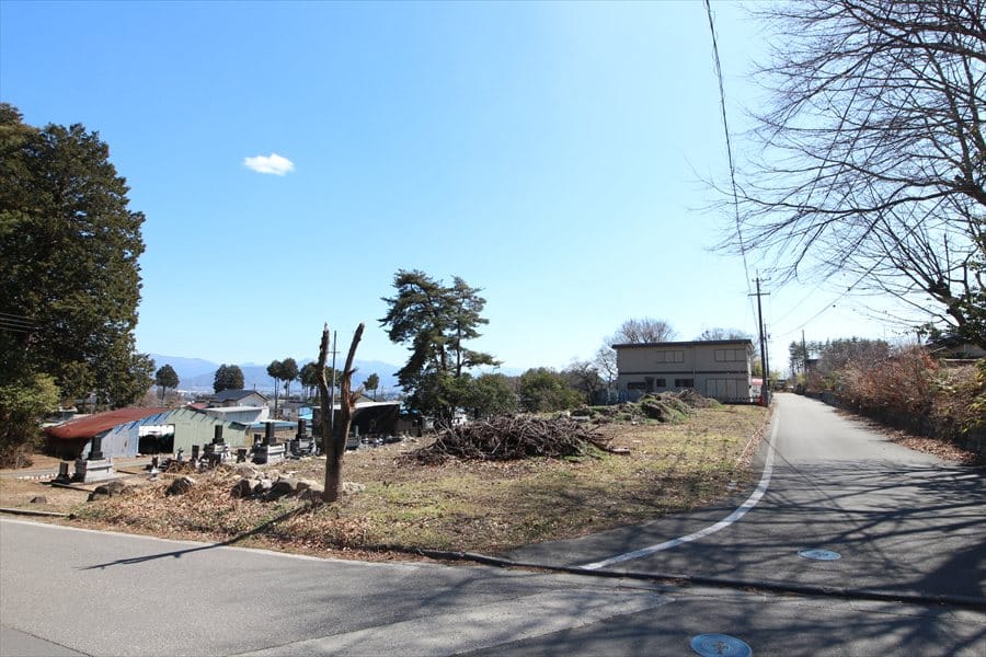山麓線より東にある平坦な土地。四方に視界が開け、眺望良好。開放感たっぷり。お墓の隣。
