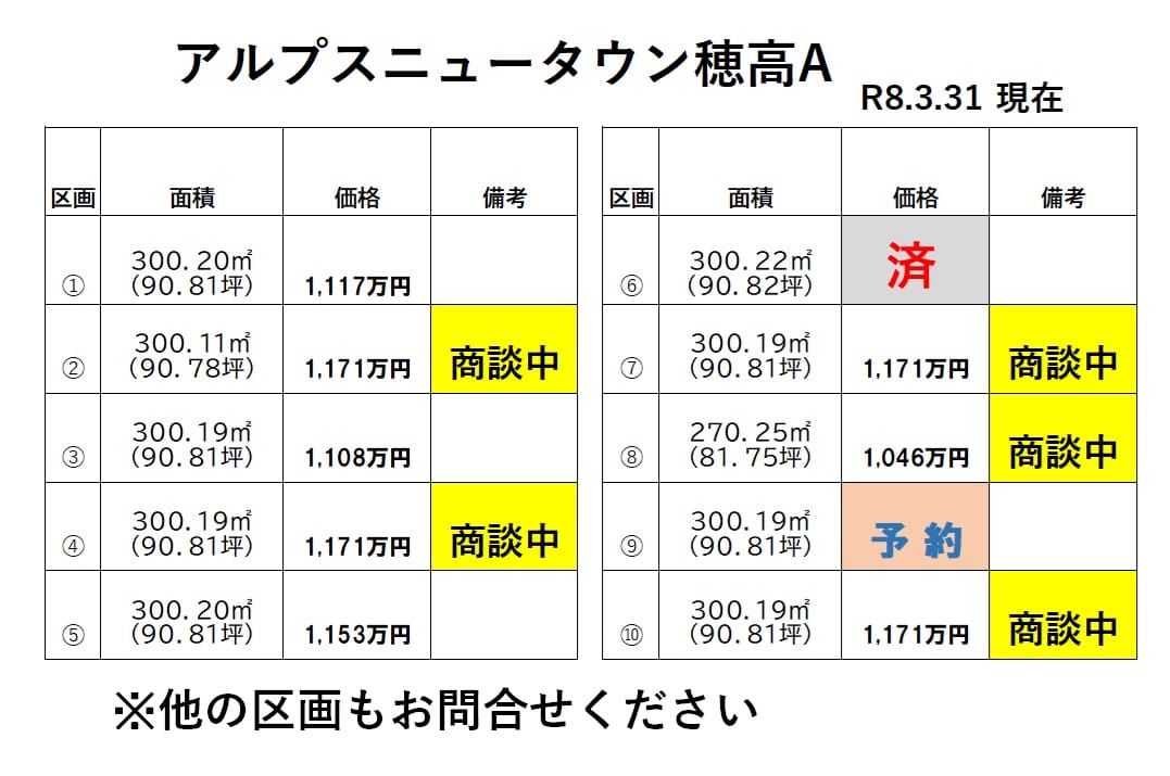 | 分譲地名 | アルプスニュータウン穂高A(区画⑤) |