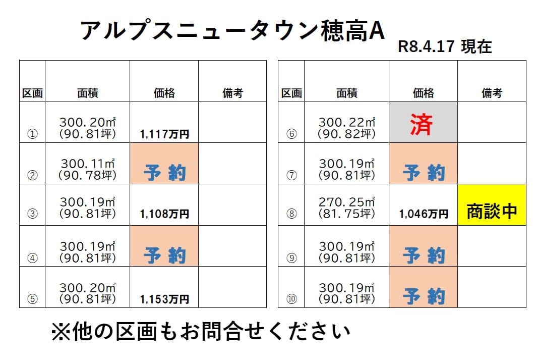 | 分譲地名 | アルプスニュータウン穂高A(区画①) |