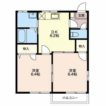 | 間取 | 2DK(洋室 6.4・洋室 6.4・DK 6.2) |