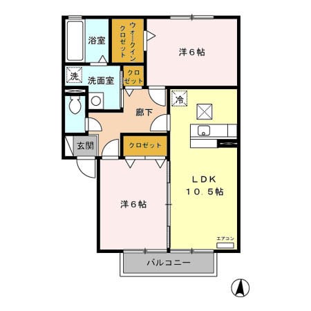 | 間取 | 2LDK(洋6・洋6・LDK10.5) |