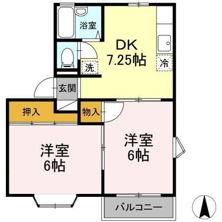 | 間取 | 2DK(洋6・和6・DK7.25) |