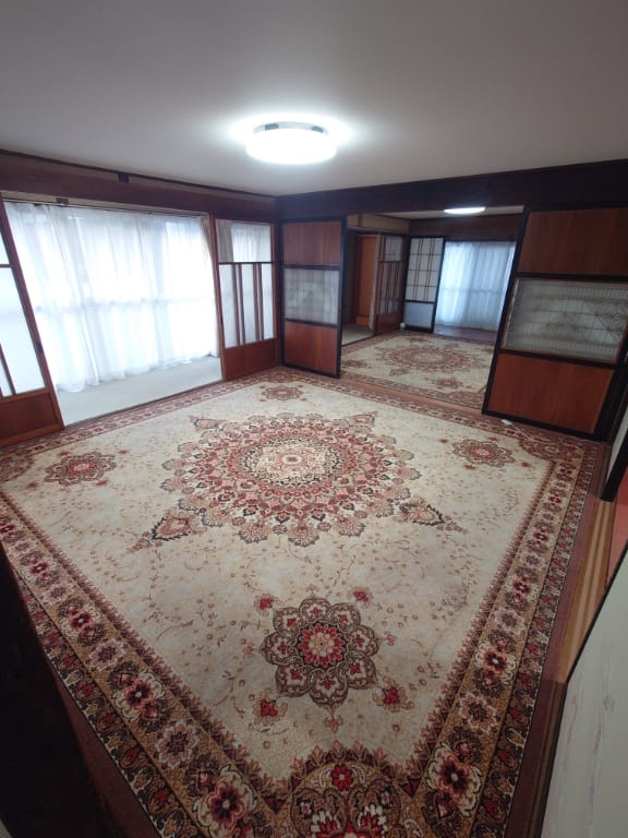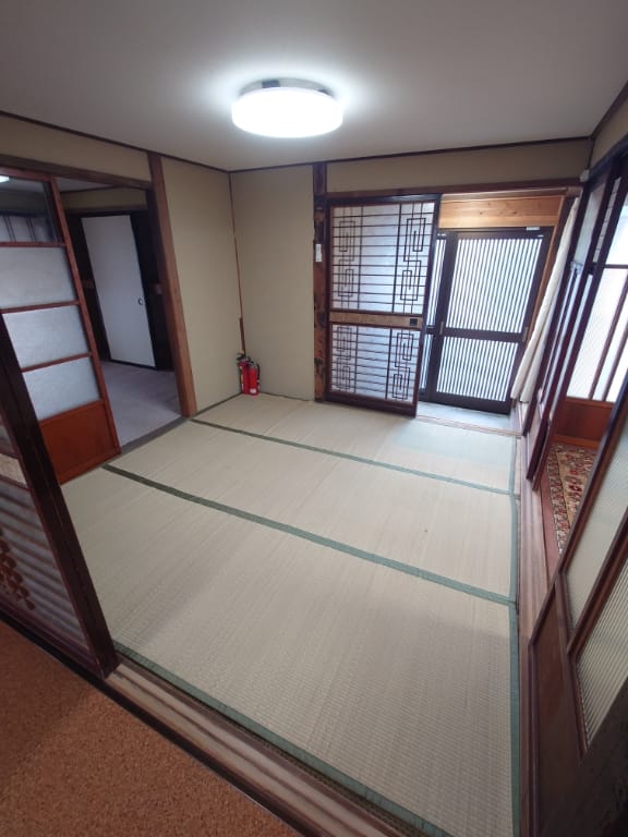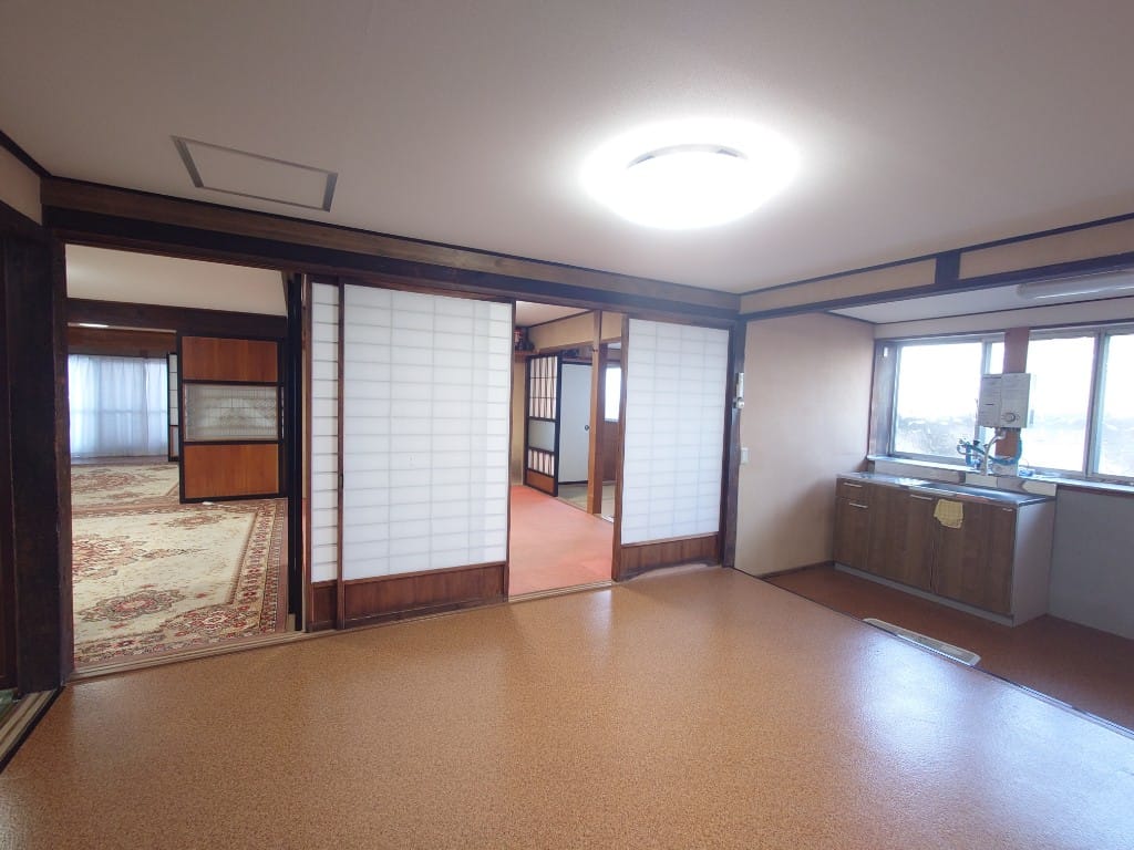農地と住宅が混在する長閑なエリアにある部屋数多数の大型貸家です。旧家の部分と増築した建物が廊下でつながった建物となります。キッチン、お風呂、トイレは増築した建物にあります。敷地内に大家さんが物置として使う別棟がありますが、こちらは対象物件外となります。たまに大家さんが別棟に用がある際に敷地への出入りがあります。