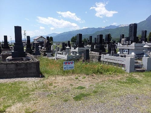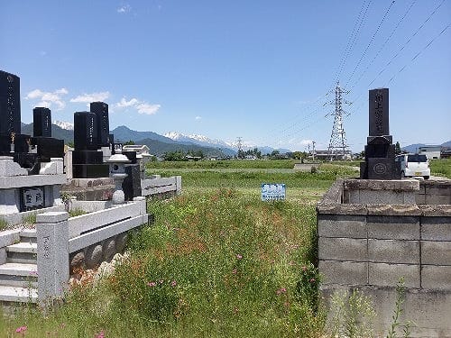 松川村の板取地区にある集団墓地内の墓じまいされた墓地用地です。移住された方や大家族で墓地をお探しの方に朗報です。また、4.5坪と広いので、ご兄弟やお友達同士でのお求めも可能です。北側が道路に面し、また農地などで開けていてロケーションも良いところです。
