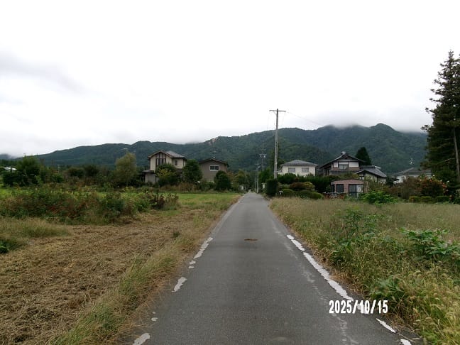 道路より西側を写す右側が物件