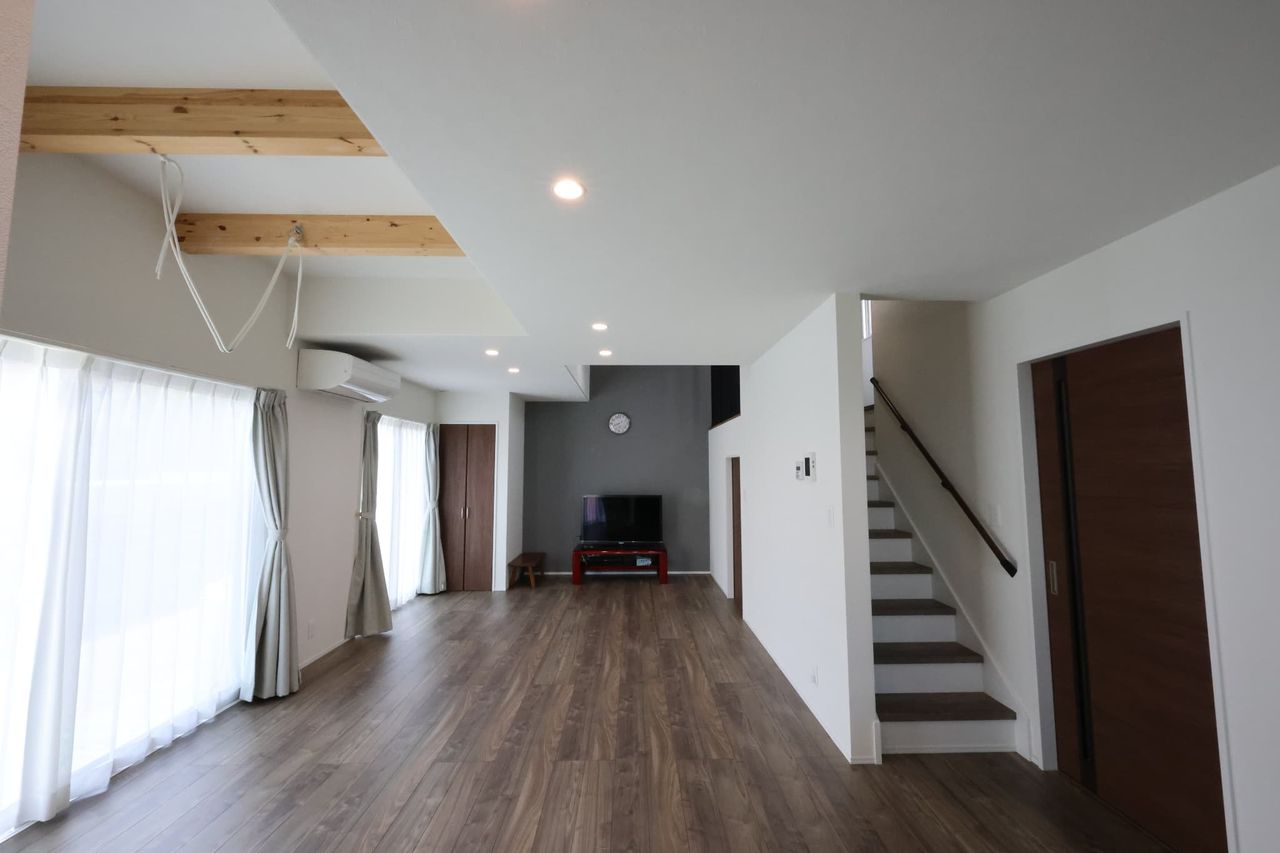 移住者が多く、自然と利便性のバランスがちょうどいい松川村。そんな人気エリアに、築4年の築浅中古住宅が登場しました。窓の外には、どこまでも広がる田園風景。空が広く、風がやさしい、ここには、時間がゆっくり流れる毎日があります。