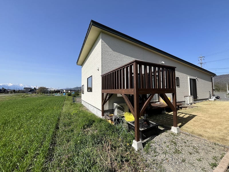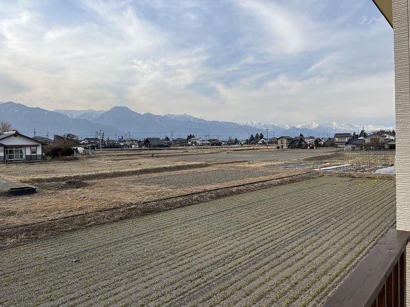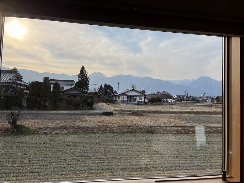 北アルプスの眺望…平屋建ての生活のしやすさ、そして利便性。相反する安曇野での大人気要望すべてを満たす物件です。
