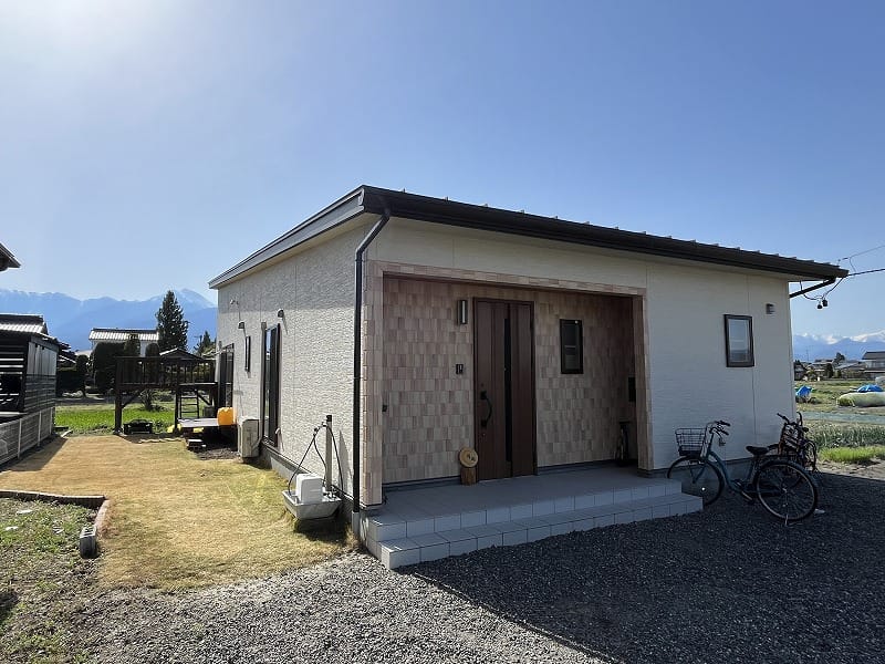 使い勝手の良い平屋建て、十分な収納スペースと広々LDK。いまどきの設計思考で建築された丁度良い広さの平屋です。リビングのソファで寛ぎのひと時を楽しみながら北アルプスの秀峰「常念岳」の眺めを満喫出来ます。