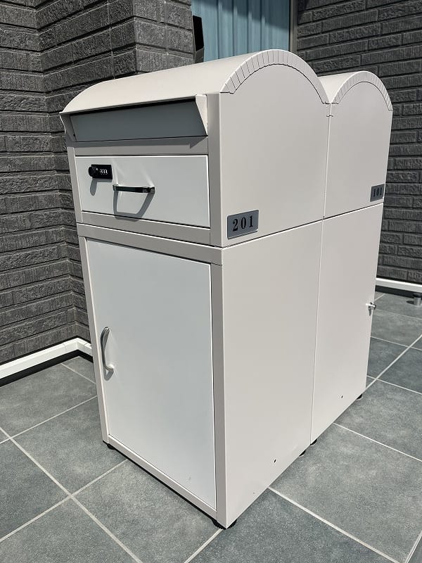 雪は少なくなったとは言え、まだまだ大町では雪が降る事もあり、除雪の雪をどかしておくスペースがあるのと無いのと、そんな時に大きな差が生まれます。クアトロ常盤の敷地はゆったりとした計画で、出入口は8m確保。両側の1mに雪が積み上げられてもまだ6m幅の通行が可能です。更に駐車スポットの区画割が、通常のアパートや商業施設で2.5~2.7m程度なのに対して3.2~3.4mの幅を確保しました。ランドクルーザーやキャンピングカーでも余裕で停められる巾です。運転、車庫入れに自信のない方にもピッタリ。各戸には専用の宅配ボックス兼郵便ポストが備え付けられ、玄関ドアは電子キーになっております。各棟には防犯カメラが備え付けられ、洗濯物はインナーバルコニーで干す設計になっておりますので、1階の女性居住も安心ですし、2階の本物件も花粉などを気にしないで洗濯物を干す事が出来ます。