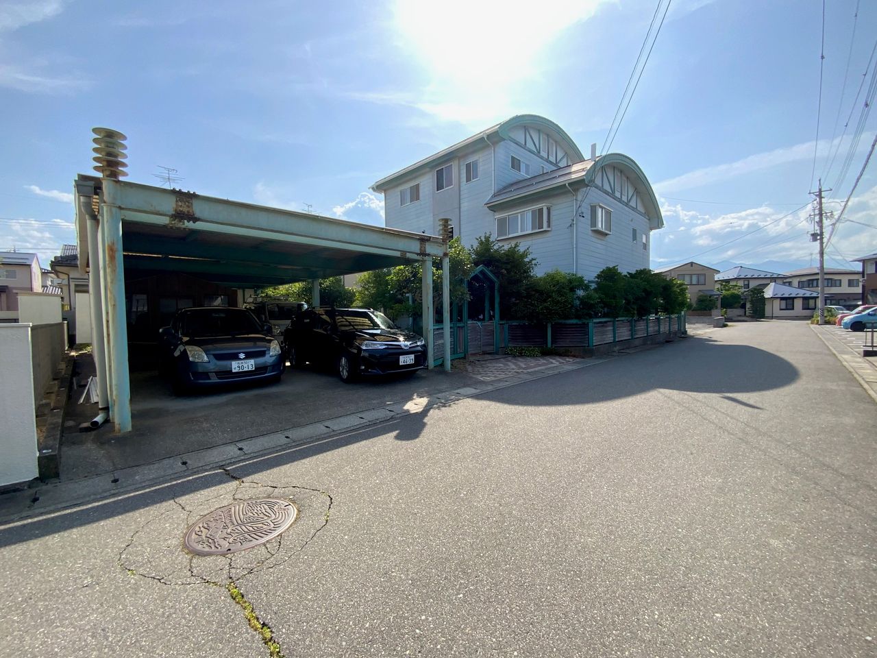 閑静な住宅街の3階建て、2世帯住宅です。3階は事務所として使用できます。3階からはアルプスの山々が一望でき、下鳥羽公園も近いため子育て世帯におすすめです。
