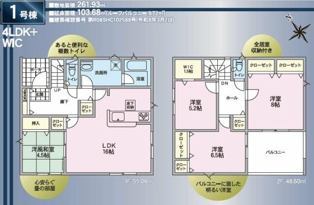 | 間取 | 4LDK(LDK16、和4.5、洋8、6.5、5.2) |