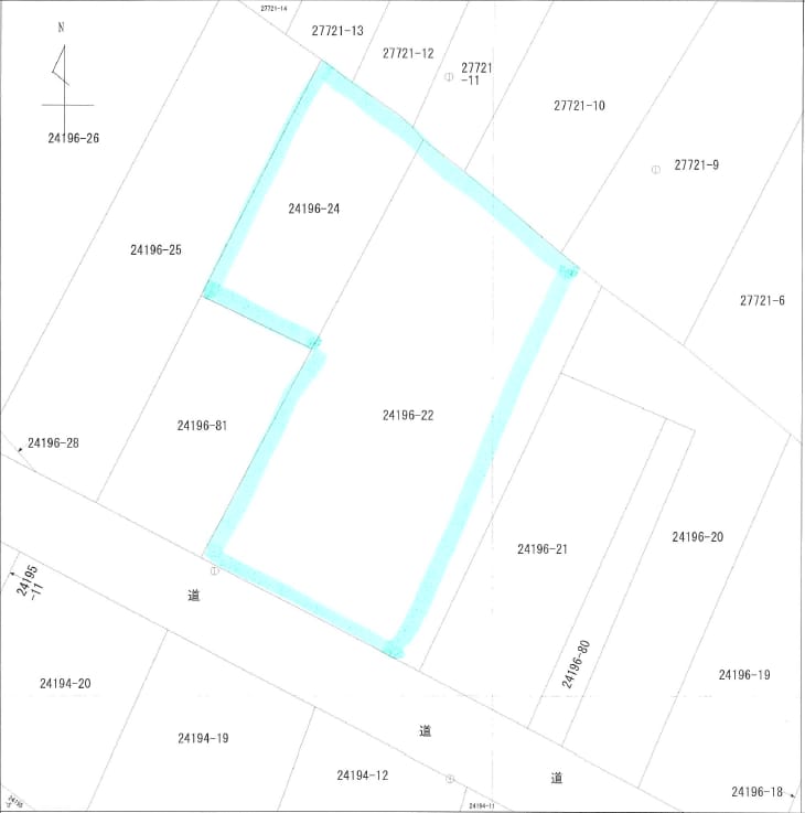 6000坪超、ほぼ平坦で高木は伐採済み。山際から離れ、四方の視界が開けます。敷地内部に赤線(道)あり。